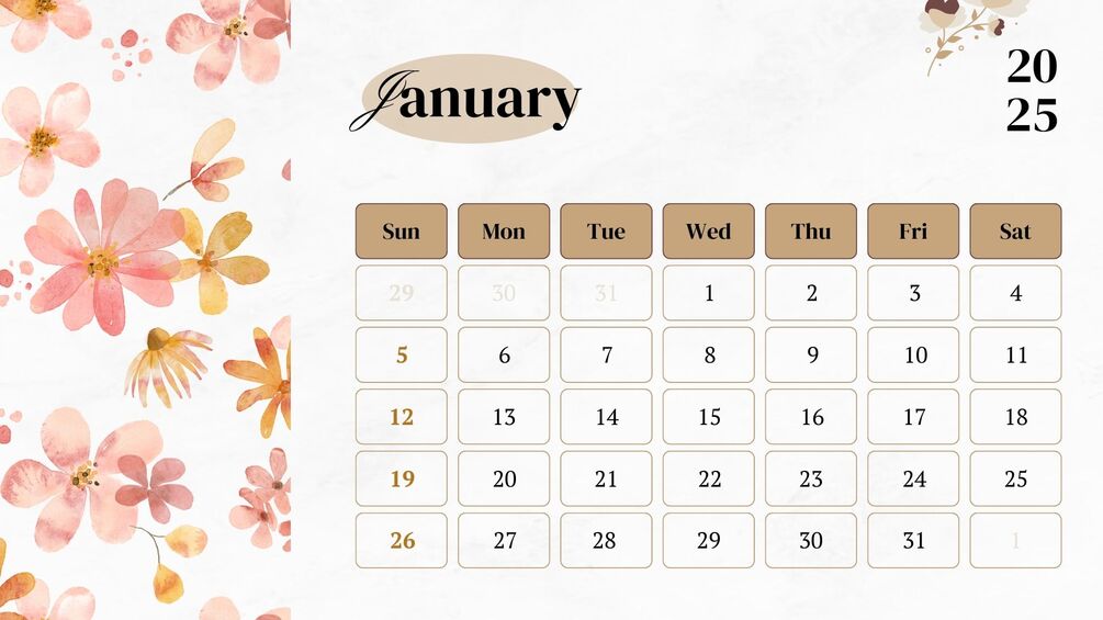 - 1 PDF file with 12 monthly calendar pages (January–December 2025)